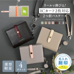 パスケース ICカード2枚対応 定期入れ レディース リール付き フェイクレザー