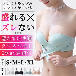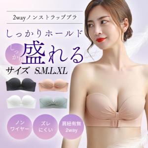 ストラップレス ブラ ノンワイヤーブラ ワイヤレスブラ シームレス ブラジャー 1/2カップ ブラトップ 大きいサイズ 盛れる ずれない ワイヤーなし 紐なし 盛り