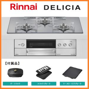 新品 26年製 リンナイ DELICIA ビルトインコンロ 都市ガス 幅75cm 3口 ガラストップ ステンレス 水無両面 強火力 RHS72W38M13RCSTW [0801]