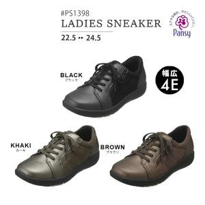 パンジー レディースシューズ #PS1398 4E スニーカー 撥水加工 疲れにくい 軽量 通勤用 ブラック カーキ ブラウン 22.5-24.5cm スライドファスナー搭載