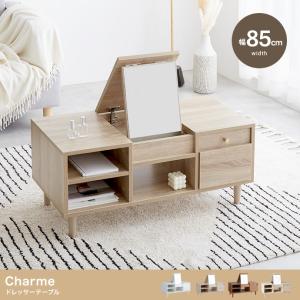 ドレッサーテーブル 大理石柄 センターテーブル 収納付き コンパクト ローテーブル 鏡 ミラー ホワイト 白 ゴールド かわいい おしゃれ
