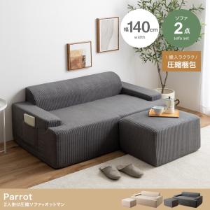 2点セット 2人掛け ソファ オットマン アームレスト ソファ 幅140cm 収納ポケット ソファベッド コーデュロイ 圧縮梱包 簡単設置 ベージュ グレー