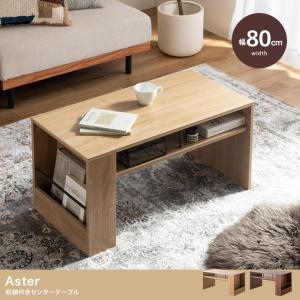 収納付き センターテーブル リビングテーブル 幅80cm 棚付き マガジンラック コンパクト ローテーブル ナチュラル ブラウン