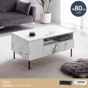大理石柄 引き出し付き センターテーブル 幅80cm 収納付き コンパクト ローテーブル マーブル ホワイト 白 ブラック 黒