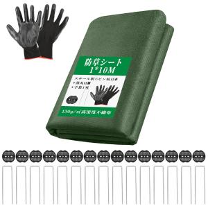 防草シート 1m 10m 130g/m【改良版】ぼうそうしーと 超高耐久 不織布 除草シート 人口芝 砂利下 約10年 ピン100本&黒丸100枚&手袋 透水性 遮光性 雑草