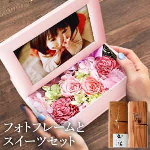 プリザーブドフラワー スイーツ セット 写真立て バウムクーヘン スイーツ 花 フォトフレーム 敬老の日 プレゼント ギフト 花 祖母 祖父 孫 70代 80代 結婚祝い
