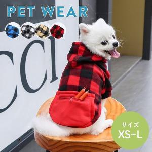 犬 服 ドッグウェア パーカー フード付き 男の子 女の子 春 秋 冬 暖かい かわいい カジュアル ポケット付き ブラック レッド ブルー ベージュ チェック 犬服