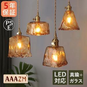 AAAZM ペンダントライト ガラス 北欧和室 真鍮 おしゃれ LED電球 四角形 ステンドグラス 天井照明器具 スイッチ付き レトロ ダイニング キッチン 吊下げランプ