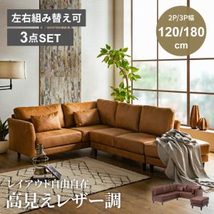 ソファー カウチソファー コーナーソファー 3人掛け 4人掛け リビングソファー ファブリックレザー スツール付 クッション付 コンパクト 3点セット セパレート