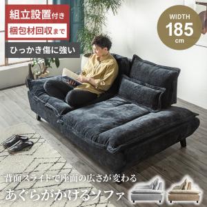 ソファー 3人掛け 幅185 撥水生地 ファブリック ふかふか ゆったり ローバック あぐらソファ ごろ寝ソファ 座面広々 あぐらがかける奥行き 背もたれ可動