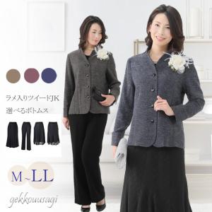 ミセス フォーマルスーツ 上下別サイズOK 選べるボトムス アンサンブルスーツ 3点セット ジャケット ロングスカート パンツスーツ ママ 母 祖母 スーツ 261-221
