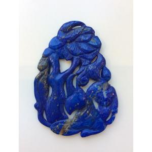ラピスラズリ カービングプレート 「ライオン」両面彫り インテリア お守り 12月誕生石