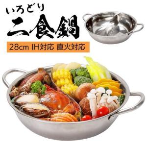 二食鍋 仕切り鍋 28cm ステンレス製 両手鍋 卓上 鍋 二味鍋 火鍋 チゲ鍋 寄せ鍋 ガス火 おうち鍋 家族 【☆80】/WJ-9131 いろどり二食鍋