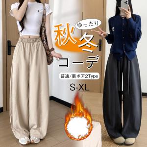 ワイドパンツ レディース コーデュロイ ボトムス ストレッチ バルーンパンツ ロング ハイウエスト カーブドパンツ フレア 美脚 裏起毛 春秋冬