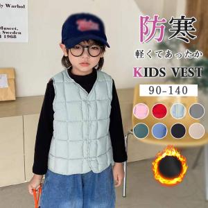 ★限定クーポン★中綿ベスト ダウン風ベスト キッズ ジュニア 子供用 女の子 男の子 アウター Vネック 前開き 前ボタン スナップボタン 上着 シンプル