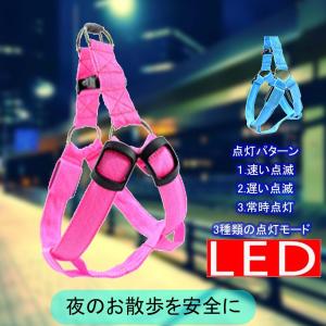 ハーネス Mサイズ ピンク ペット用品 光る 胴輪 ペット 光る LED電池式 お散歩 グッズ 夜のお散歩 夜間用 おしゃれ 目立つ 犬 猫 イヌ いぬ dog ドッグ
