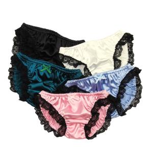 レディース レース・リボン付き ソフトサテン インゴム 光沢 ローライズ スキャンティー パンティー かわいい 小さいパンツ 浅め メール便