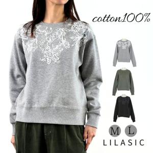 リラシク LILASIC エンブロイダリー カノコ 裏起毛 プルオーバー スウェット トレーナー 長袖 レディース 暖か トップス 綿100% [M便 不可]