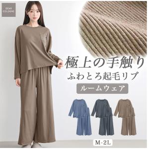 ふわとろ 起毛リブ 極上の手触り ルームウェア ワイドパンツタイプ レディース パジャマ のびのび 部屋着 薄手 dr009