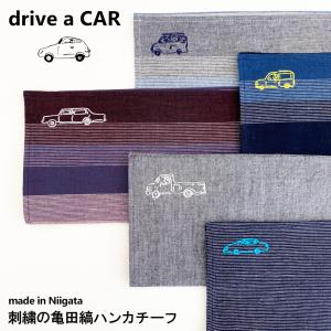 drive a CAR クラシックカー 車 綿100% 日本製 ハンカチ ストライプ 平刺繍 レディース メンズ 男性 おしゃれ 高級 和風