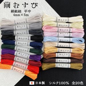 【繭むすび】絹紐 中(平) 約4mm×5m シルク100% 日本製 組紐 掛け紐 飾り紐 手芸 クラフト ハンドメイド 自社製造《1mあたり200円(税別)》