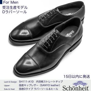 日本製グッドイヤーウエルト紳士靴 ショーンハイト 内羽根ストレートチップA1D(SH111-A1D)ラバー底 黒