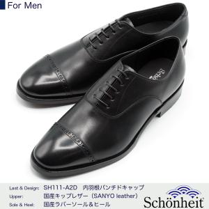 日本製グッドイヤーウエルト紳士靴 ショーンハイト 内羽根パンチドキャップA2D(SH111-A2D)ラバー底 黒