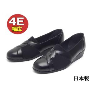 4E ゆったり幅広 クロスデザイン スリッポンシューズ 日本製 ブラック