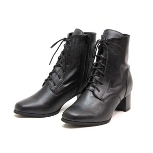 レディース レースアップブーツ 厚底 ミドルブーツ 編み上げ サイドジップ ブラック