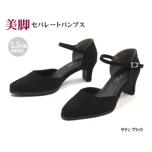 セパレートパンプス フォーマル スクエアトゥ 低反発インソール サテン ブラック