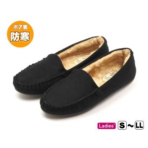 レディース あったか モカシンシューズ スエード調 フラットシューズ ブラック