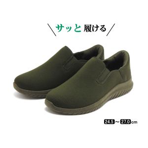 メンズ サッと履ける 楽々スリッポンシューズ オールカーキ