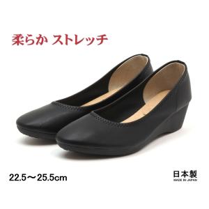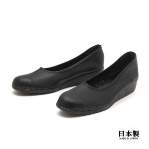 本革 5E 幅広 プレーンパンプス スクエアトゥ ビジネス フォーマル 3.5cmヒール ブラック