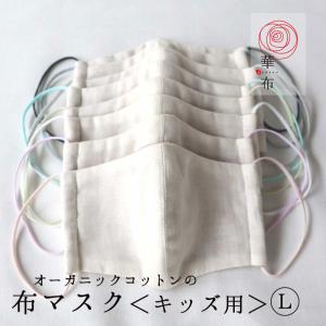布マスク オーガニックコットン キッズ用 子ども用 Lサイズ カラーゴム 8色 小学校 中学年 高学年 小学生 無地 給食マスク 給食用 子供 こども