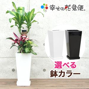 観葉植物 寄せ植え-8号高陶器-角鉢 (白黒) 新築祝い 開店祝い 人気