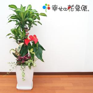 観葉植物 寄せ植え-10号角高陶器鉢(紅白アンスリューム入) 新築祝い 開店祝い 人気 佐川急便
