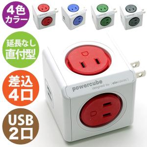 PowerCube パワーキューブ 電源タップ AC4口 USB2口 コンセント 直付型 4色(ブルー青/レッド赤/グリーン緑/グレー)