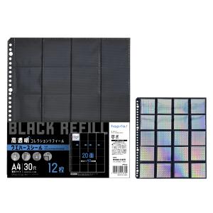 ハピラ ウエハースシールコレクションリフィール A4ワイド 30穴 12枚入 20面40ポケット スリーブ対応 横入れ 両面ポケット 黒台紙 チョコシール ブラック PF012