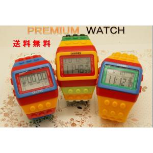 メンズ時計 レディズ時計 腕時計 LED時計 デジタルウォッチ レゴ時計 ファション時計 カラフル ボーイズ、ガールズ ブロックベルト時計No2! 送料無料!