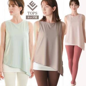 ヨガウェア ピラティス トップス レイヤード風 2way アシンメトリー カップ付き ロング丈 長い タンクトップ ホットヨガ