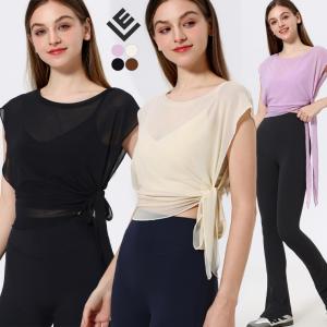 トップス ハーフ丈 ショート丈 ヨガウェア メッシュ 透け感 おしゃれ エレガント 肌見せ 脚長効果 カップ付き ストレスフリー ホットヨガ ダンスウェア