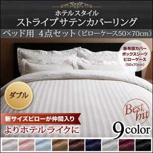 布団カバー セット ベッド用 ダブル 4点セット おしゃれ ストライプ柄×サテン素材 ストライプサテンカバーリング ピローケース 50×70cm ポイント消化