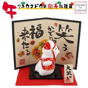 リュウコドウ(龍虎堂)大笑い 招福午 (大) 屏風付き R-37 和雑貨/お正月/干支/午年/令和8年/2026年/置物/縁起物/開運/ちりめん/うま年