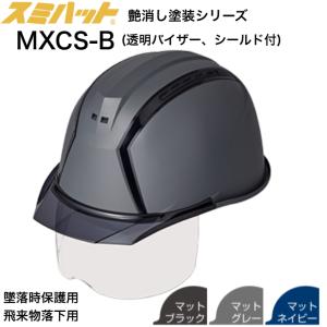 スミハット MXCS-B 工事用 ヘルメット つや消し 塗装 マット 塗装 シールド付 透明バイザー付 飛来物落下用 墜落時保護用 通気孔あり かっこいい おしゃれ