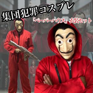 ハロウィン コスプレ メンズ 仮装 囚人 仮面 マスク (ペーパーハウス 仮装セット) つなぎと仮面で簡単コスプレ