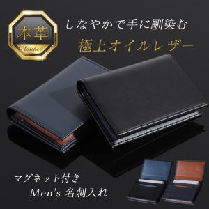 名刺入れ メンズ 本革 「使い込むほどに馴染むオイルレザー」マグネット付 薄型 大容量 (50枚収納)汚れに強い 名刺ケース 名刺ホルダー カードケース