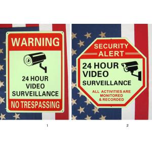 US セキュリティサイン 長方形 八角形 アルミ製 蛍光 グロウタイプ 暗闇で光る 防犯看板 警告看板 防犯カメラ看板 防犯カメラプレート アメリカ雑貨 ガレージ