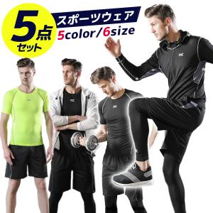 トレーニングウェア 上下セット メンズ 5点 セット スポーツウェア ランニングウェア ジャージ 筋トレ コンプレッションウェア