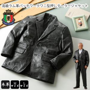 フランコ・コレツィオーニ 高級ラム革パッチワークワニ型押しテーラージャケット 41193 ブラック 黒 ワニ型 クロコダイル 革ジャン ボア レザージャケット 本革