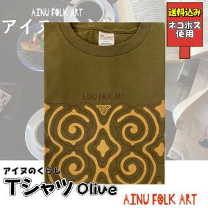 送料込み アイヌのくらし Tシャツ オリーブ アイヌ文様 アイヌ紋様 Tシャツ 夏 北海道 個性的 おしゃれ かわいい 半袖 グッズ ネコポス